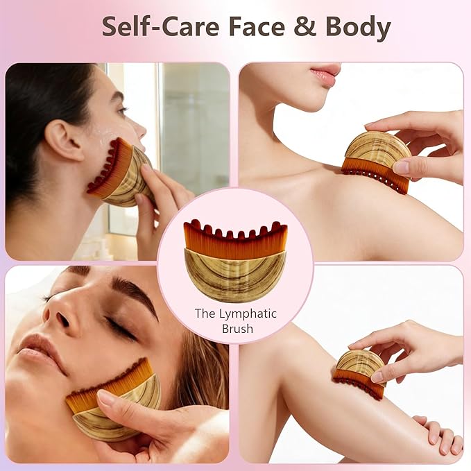 • 怐Ergonomic Lymphatic Face Brush怑 This face brush for lymphatic drainage is designed for professional and at-home facial care, with a curved brush surface that precisely follows facial contours. It promotes natural relaxation by targeting key lymph nodes and pathways, improving facial circulation and supporting natural detoxification.