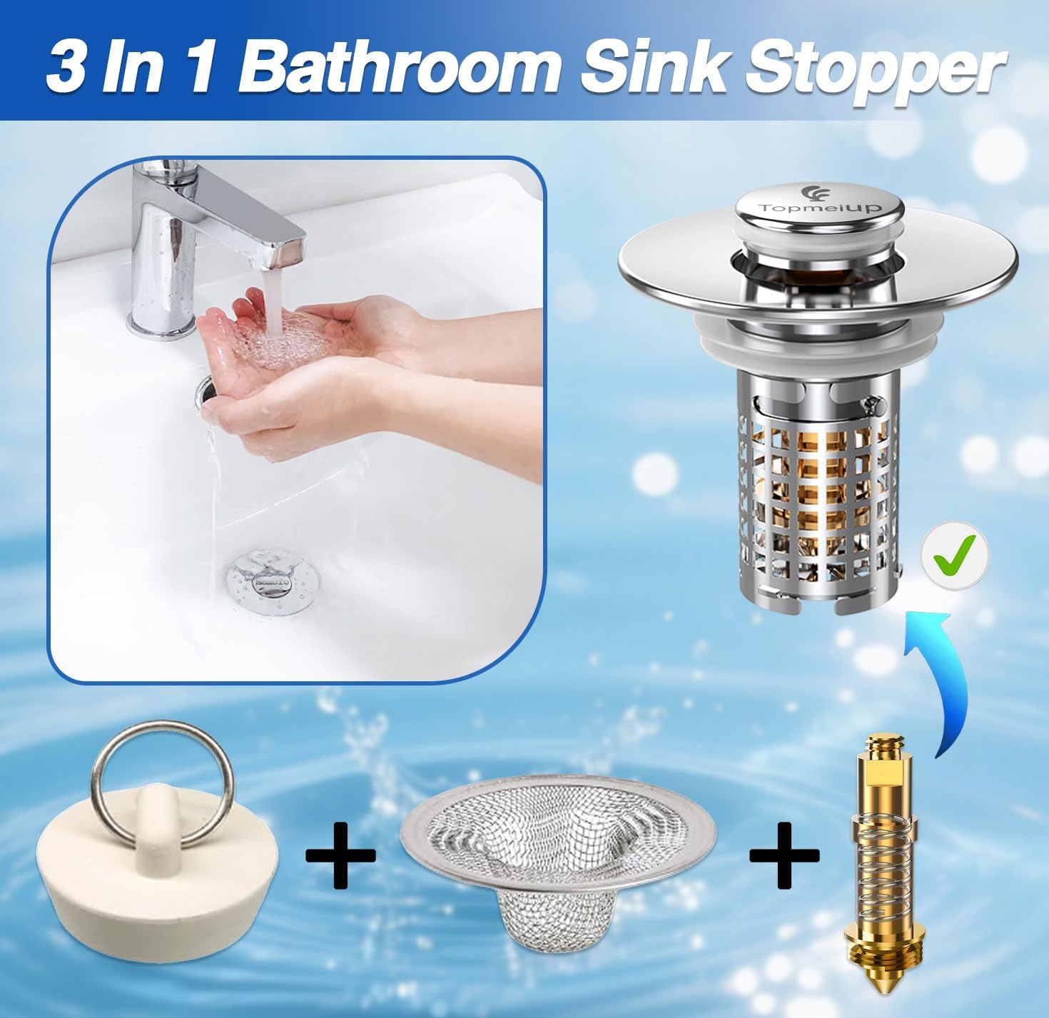 Be the first to review “Sink Drain Stopper, 3-in-1 Pop Up Sink Strainer with Removable Hair Catcher for Bathroom Sink, Universal 1.1-2.36 Inch Drain Cover, 2PCS, Brass Core (New/1PCS)” Cancel reply